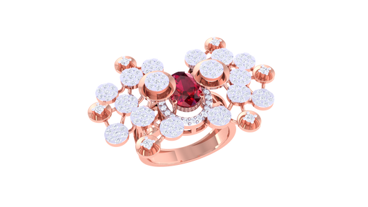 Golden Orbit Red Gem Cluster Ring